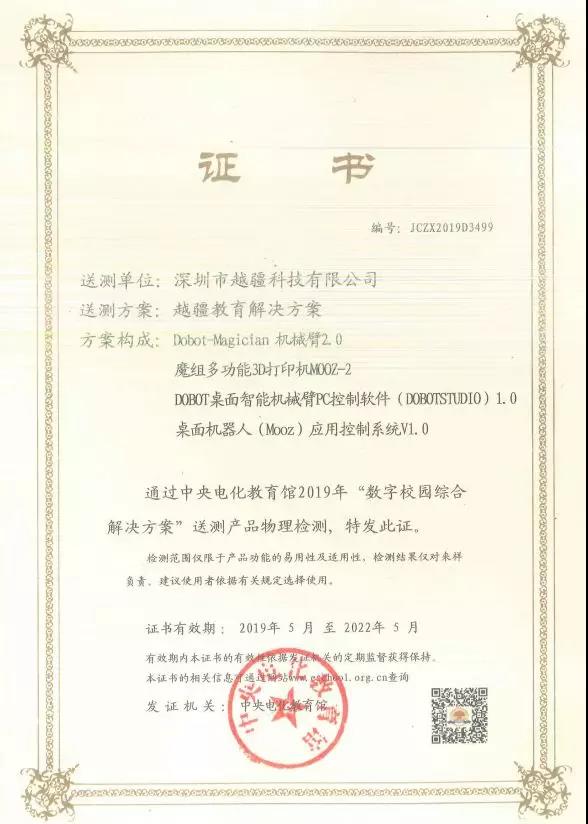 近日,中央電化教育館公布“2019 年數(shù)字校園綜合解決方案”合格名單。越疆教育解決方案脫穎而出,成功入圍此次中央電化教育館的推薦目錄。