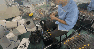 越疆 CR5 協作機器人與產線員工協同作業,實現高效、高質量的繼電器產品涂膠生產,穩定可靠的協作機器人彌補了人工涂膠存在的不均勻、效率低等問題,同時減輕了員工的工作壓力,為企業帶來了實質性的收益和發展機遇。/p>